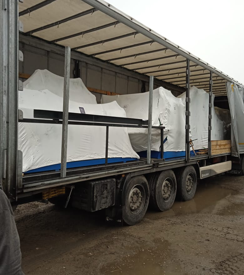 Линия имеет 19 мест в комплектации и была отгружена двумя полными машинами. После прихода на наш склад специалисты произвели разгрузку, упаковку в термоусадочную ингибиторную плёнку и 24 сентября 2025 года организовали погрузку на транспорт клиента. Подобные решения будут востребованы в машиностроении, металлообрабатывающей промышленности и среди производителей профилей из рулонного металла.