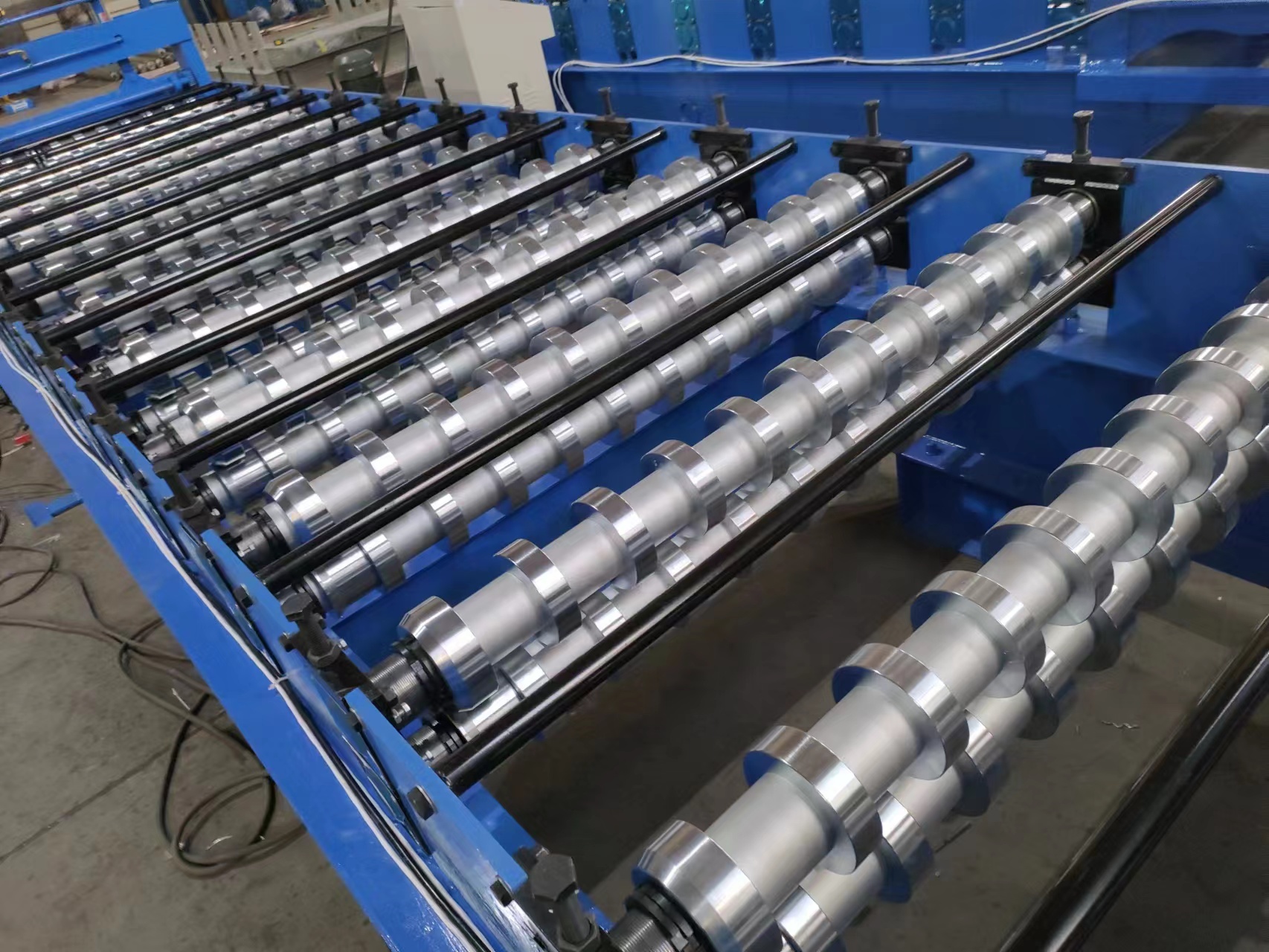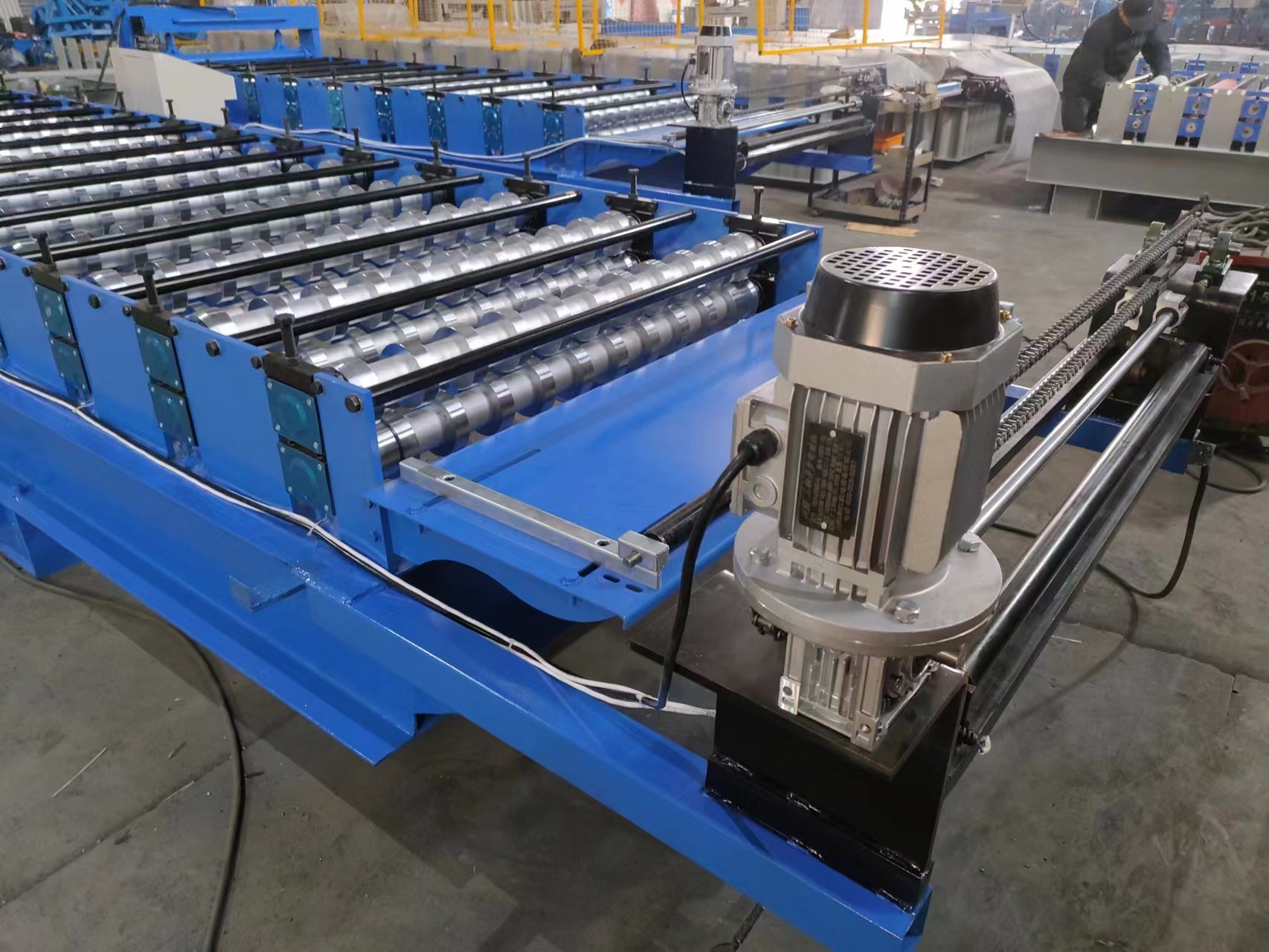 Клиент выбрал линию в экспортной комплектации с целым рядом доработок: цельнометаллическими валами, увеличенным количеством профилегибочных клетей, предварительным отрезным устройством и размотчиком с электроприводом. Эти технические особенности обеспечивают высокую точность формовки, надёжность и долговечность станка даже при интенсивных нагрузках.